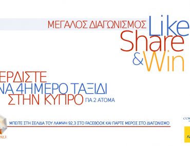 Ο ΛΑΜΨΗ 92,3 – www.lampsifm.com διοργανώνει διαγωνισμό και σας δίνει τη δυνατότητα να κερδίσετε 4ημερο ταξίδι στην Κύπρο! Αεροπορικά εισιτήρια διαμονή με πρωινό στο 5άστερο Coral Beach Hotel & resort στην Πάφο μεταφορά από και προς το αεροδρόμιο για ένα τυχερό ζευγάρι!