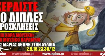 Το Ogdoo.gr εξασφάλισε για τους αναγνώστες του δέκα διπλές προσκλήσεις για την παιδική παράσταση «Μια χώρα Μουσική» της Μαρίας Αθήνη στην Αυλαία, όλες τις Κυριακές του Δεκεμβρίου 2012 (02, 09,16, 23 & 30/12).