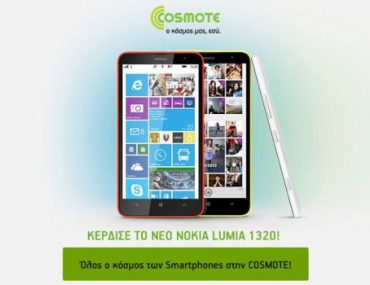 20-06-2014 Διαγωνισμός COSMOTE με δώρο το ΝΟΚΙΑ Lumia 1320 Η COSMOTE διοργανώνει διαγωνισμό και σας δίνει τη δυνατότητα να κερδίσετε το νέο ΝΟΚΙΑ Lumia 1320! Περισσοτερα...