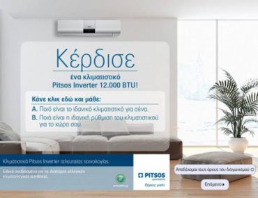Η σελίδα Οικιακές Συσκευές Pitsos διοργανώνει διαγωνισμό και σας δίνει τη δυνατότητα να κερδίσετε 1 κλιματιστικό Pitsos 12.000 btu (εσωτερική μονάδα: P1ZAI1250W / εξωτερική μονάδα: P1ZAO1250W).