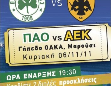 Ο ΧΡΥΣΟΣ ΟΔΗΓΟΣ διοργανώνει διαγωνισμό και σας δίνει τη δυνατότητα να κερδίσετε 2 διπλές προσκλήσεις για τον αγώνα μεταξύ ΠΑΟ – ΑΕΚ στο ΟΑΚΑ στις 6/11/2011.