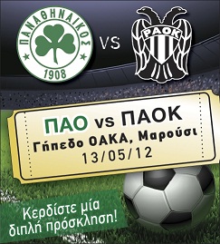 Η σελίδα του ΧΡΥΣΟΥ ΟΔΗΓΟΥ διοργανώνει διαγωνισμό και σας δίνει τη δυνατότητα να κερδίσετε 1 διπλή πρόσκληση για τον αγώνα ΠΑΟ – ΠΑΟΚ στις 13/5 στο ΟΑΚΑ.