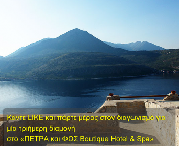 Το tralala.gr σε συνεργασία με το bookingreece.com, το site ηλεκτρονικών ξενοδοχειακών online κρατήσεων, διοργανώνει διαγωνισμό και σας δίνει τη δυνατότητα να κερδίσετε ένα υπέροχο 4ήμερο ταξίδι στο ξενοδοχείο “ΠΕΤΡΑ ΚΑΙ ΦΩΣ” Boutique Hotel & Spa.