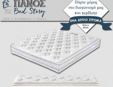 22-01-2016 Διαγωνισμός Πανος BedStory με δώρο στρώμα Greco Strom H Πανος BedStory διοργανώνει διαγωνισμό και σας δίνει τη δυνατότητα να κερδίσετε ένα διπλό στρώμα Greco Strom! Περισσοτερα...