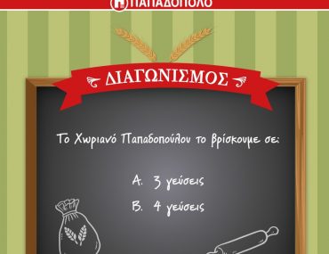 Η σελίδα Ψωμί Παπαδοπούλου διοργανώνει διαγωνισμό και δίνει τη δυνατότητα σε 3 τυχερούς να κερδίσουν συσκευασίες με προϊόντα Παπαδοπούλου!