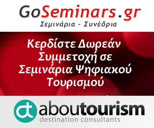 Η σελίδα goseminars.gr διοργανώνει διαγωνισμό και σας δίνει τη δυνατότητα να κερδίσετε 2 δωρεάν θέσεις για το σεμινάριο Ψηφιακού Τουρισμού που θα πραγματοποιηθεί στη Θεσσαλονίκη στις 26 & 27 Απριλίου 2012 & στη Ρόδο 8 & 9 Μαΐου 2012.