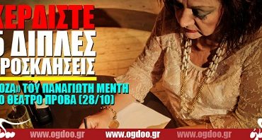 Το Ogdoo.gr εξασφάλισε για τους αναγνώστες του πέντε διπλές προσκλήσεις για τη θεατρική παράσταση «Ρόζα Εσκενάζυ» του Παναγιώτη Μέντη στο Θέατρο Πρόβα, στις 28 Οκτωβρίου 2012.