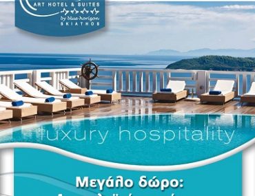 Το ξενοδοχείο Kivo Art Hotel & Suites διοργανώνει διαγωνισμό και σας δίνει τη δυνατότητα να κερδίσετε ακτοπλοϊκά εισιτήρια από Βόλο ή Άγιο Κωνσταντίνο για Σκιάθο, δύο (2) διανυκτερεύσεις σε δίκλινο δωμάτιο με θέα τη θάλασσα και ένα (1) δείπνο για δύο (2) άτομα στο Sea View Restaurant Cafeé Bar (28/07/2012 – 29/07/2012).