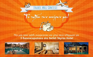Η egnomi.gr διοργανώνει διαγωνισμό και σας δίνει τη δυνατότητα να κερδίσετε 3ήμερη διαμονή για δυο άτομα με πρωινό, στο ξενοδοχείο Νεφέλη στην Σκύρο, συνολικής αξίας 228€!