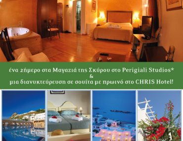 To Chris Hotel διοργανώνει διαγωνισμό και σας δίνει τη δυνατότητα να κερδίσετε ένα 2ήμερο στη Σκύρο, στο Perigiali Studios, σε σουίτα!