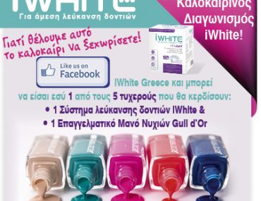 Η σελίδα iwhite Greece διοργανώνει διαγωνισμό και σας δίνει τη δυνατότητα να κερδίσετε 1 υπέροχο επαγγελματικό μανό νυχιών Guil D’Or και 1 Σύστημα Λεύκανσης iwhite!