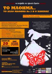 Το Arts and the City σας δίνει την ευκαιρία να κερδίσετε προσκλήσεις για την θεατρική παράταση «Το μάθημα το άλλο μάθημα Νο2 ή ο κανένας». Η παράσταση παίζεται κάθε Τετάρτη στις 19:00 και Κυριακή στις 19:30 στο Θέατρο Παραμυθίας.