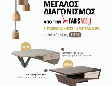 H Paris Mobile Home διοργανώνει διαγωνισμό και δίνει τη δυνατότητα σε 2 τυχερές να κερδίσουν από ένα υπέροχο τραπεζάκι μέσης!