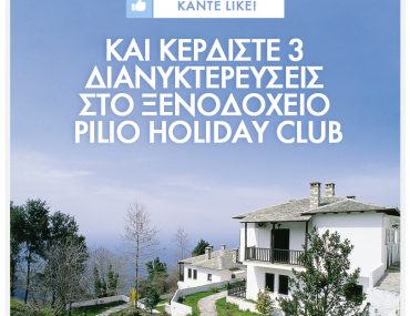 Το in.gr, σε συνεργασία με το παραδοσιακό ξενοδοχείο Pilio Holiday Club, στην περιοχή της Τσαγκαράδας Πηλίου, προσφέρει σε δύο τυχερούς επισκέπτες του τετραήμερη διαμονή (τρεις διανυκτερεύσεις) σε δίκλινο δωμάτιο.