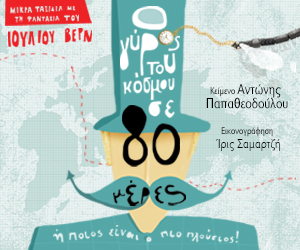 Το Τaλκ και οι Εκδόσεις Παπαδόπουλος προσφέρουν σε τρεις τυχερούς από ένα αντίτυπο του βιβλίου «Ο γύρος του κόσμου σε 80 μέρες» του Αντώνη Παπαθεοδούλου, σε εικονογράφηση Ίριδας Σαμαρτζή.