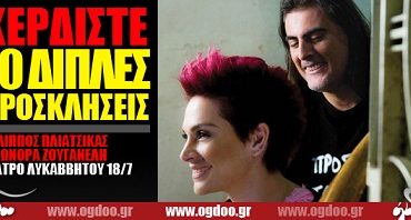 Το Ogdoo.gr εξασφάλισε για τους αναγνώστες του δέκα διπλές προσκλήσεις για τη μεγάλη συναυλία του Φίλιππου Πλιάτσικα & της Ελεωνόρας Ζουγανέλη, στο θέατρο του Λυκαβηττού, την Τετάρτη 18 Ιουλίου.