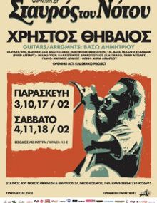Το Free Press περιοδικό ALTER VITA σε συνεργασία με τον ΣΤΑΥΡΟ ΤΟΥ ΝΟΤΟΥ εξασφάλισε για εσάς, δύο ΔΩΡΕΑΝ διπλές προσκλήσεις για Παρασκευή 17 Φεβρουαρίου για την εμφάνιση του ΧΡΗΣΤΟΥ ΘΗΒΑΙΟΥ στην Κεντρική Σκηνή του Σταυρού του Νότου.