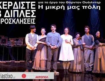 Το diastixo.gr, σε συνεργασία με το Θεατρικό Οργανισμό Ακροπόλ, προσφέρει στους αναγνώστες του 3 διπλές προσκλήσεις, για το έργο του Θόρντον Ουάιλντερ Η μικρή μας πόλη (για την παράσταση της Παρασκευής 22 Μαρτίου στις 18:00).