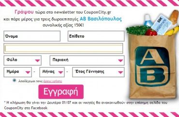 Το couponcity.gr διοργανώνει διαγωνισμό και σας δίνει τη δυνατότητα να κερδίσετε 3 δωροεπιταγές ΑΒ Βασιλόπουλος συνολικής αξίας 150€.