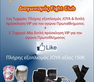 Το DailyGoal.gr διοργανώνει διαγωνισμό και σας δίνει τη δυνατότητα να κερδίσετε έναν πλήρη εξοπλισμό kick boxing Joya αξίας 150€ και μία διπλή πρόσκληση VIP για τον αγώνα του πρωταθλήματος (1ος τυχερός) και από μία διπλή πρόσκληση VIP για τον αγώνα του πρωταθλήματος σε 5 ακόμα τυχερούς.
