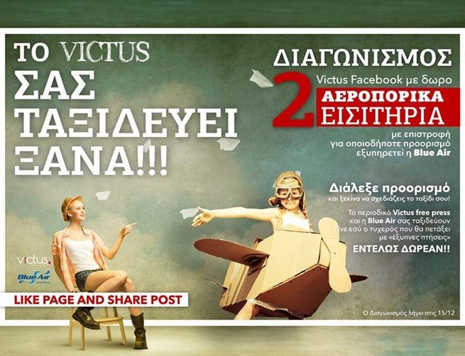 Το Victus διοργανώνει διαγωνισμό και σας δίνει τη δυνατότητα να κερδίσετε 2 αεροπορικά εισιτήρια με επιστροφή για οποιοδήποτε προορισμό εξυπηρετεί η Blue Air!