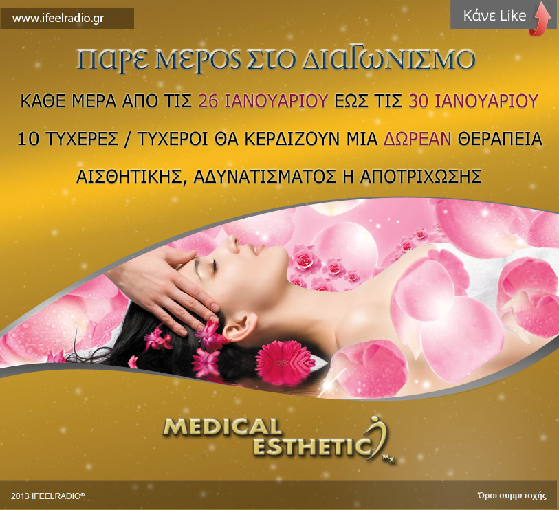 Το ifeelradio.gr διοργανώνει διαγωνισμό και δίνει τη δυνατότητα σε 10 τυχερές / τυχερούς να κερδίζουν μια δωρεάν θεραπεία Αισθητικής, Αδυνατίσματος ή Αποτρίχωσης κάθε μέρα!