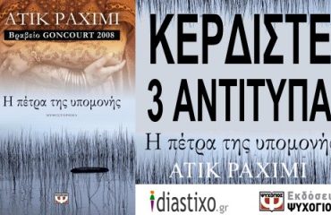 Το diastixo.gr σε συνεργασία με τις εκδόσεις Ψυχογιός, προσφέρει στους αναγνώστες του 3 αντίτυπα από το μυθιστόρημα του Ατίκ Ραχιμί « Η ΠΕΤΡΑ ΤΗΣ ΥΠΟΜΟΝΗΣ ».