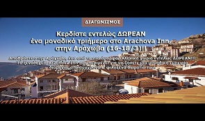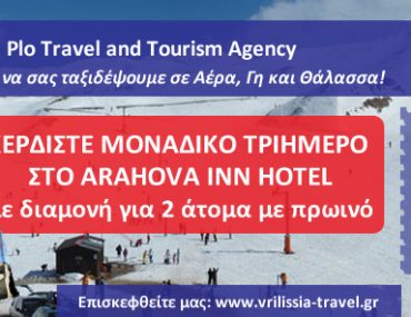 Το Air & Plo Travel διοργανώνει διαγωνισμό και σας δίνει τη δυνατότητα να κερδίσετε ένα τριήμερο στην Αράχωβα, στο ARAHOVA INN με πρωινό για 2 άτομα σε δίκλινο δωμάτιο, για το τριήμερο της 25ης Μαρτίου.