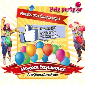 Το Poly party προσφέρει σε 10 τυχερούς από μία διοργάνωση παιδικού party ή βάπτισης εντός Αττικής και σε 1 τυχερό ένα παιδικό party με DJ συνολικής αξίας 650 Ευρώ.