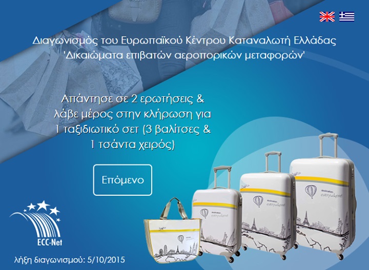 Το Ευρωπαϊκό Κέντρο Καταναλωτή Ελλάδας διοργανώνει διαγωνισμό και σας δίνει τη δυνατότητα να κερδίσετε 3 βαλίστες & 1 τσάντα χειρός!