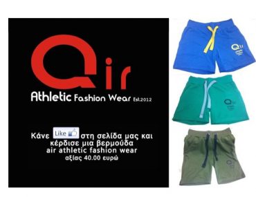 Η σελίδα Air Athletic Fashion Wear διοργανώνει διαγωνισμό και σας δίνει τη δυνατότητα να κερδίσετε μια βερμούδα αξίας 40 ευρώ.