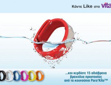 Το vita.gr διοργανώνει διαγωνισμό και σας δίνει τη δυνατότητα να κερδίσετε 15 αδιάβροχα βραχιόλια Para’Kito, που σας προστατεύει από τα κουνούπια, κύριο χαρακτηριστικό του οποίου είναι η καινοτομία και η ευκολία στη χρήση. Το κάθε βραχιόλι περιέχει 1 ταμπλέτα, διάρκειας 15 ημερών. To δώρο είναι προσφορά της εταιρείας ΚΑΒΟ ΝΑΤURA.