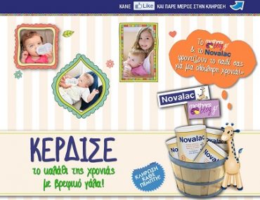 Το Mothersblog.gr σε συνεργασία με την Novalac, διοργανώνει τον πιο τρυφερό διαγωνισμό… «ΚΕΡΔΙΣΕ το Καλάθι της Χρονιάς με Βρεφικό Γάλα», όπου 5 τυχερές μαμάδες θα κερδίσουν για τα μικρά τους, το γάλα μιας ολόκληρης χρονιάς.