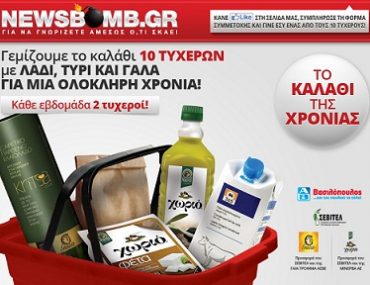 Το NewsBomb.gr σε συνεργασία με τον ΣΕΒΙΤΕΛ, τη ΜΙΝΕΡΒΑ, τη ΓΑΙΑ και την ΑΒ ΒΑΣΙΛΟΠΟΥΛΟΣ σας προσφέρει «το ΚΑΛΑΘΙ ΤΗΣ ΧΡΟΝΙΑΣ» με λάδι, τυρί και γάλα! Ενάντια στις τιμές των προϊόντων που ανεβαίνουν καθημερινά, το NewsBomb.gr εξασφάλισε για εσάς τα τρία ΒΑΣΙΚΑ προϊόντα για κάθε ελληνικό τραπέζι και για μια ολόκληρη χρονιά!