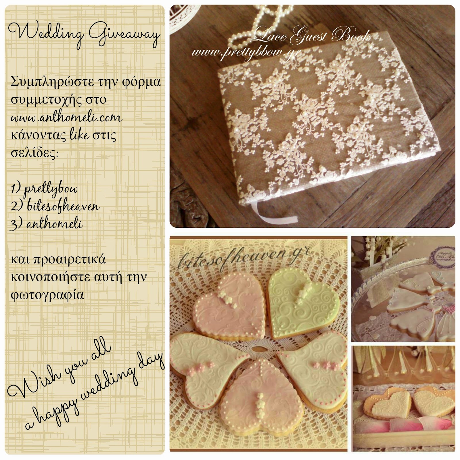 Το anthomeli.com διοργανώνει διαγωνισμό και σας δίνει τη δυνατότητα να κερδίσετε βιβλίο ευχών και 50 μπισκότα για τον γάμο σας!