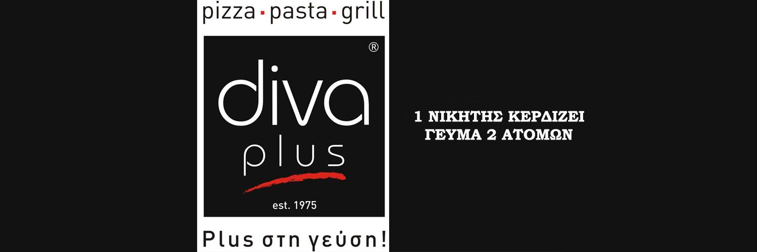 Το koukaki.gr διοργανώνει διαγωνισμό και σας δίνει τη δυνατότητα να κερδίσετε 1 γεύμα δύο ατόμων στο diva plus: μια πίτσα σπέσιαλ ή 2 σπαγγέτι της επιλογής σας – μια σαλάτα της επιλογής σας και – 2 ποτήρια κρασί.