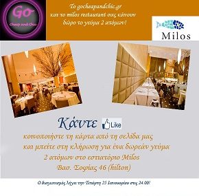 Το gocheapandchic.gr διοργανώνει διαγωνισμό και σας δίνει τη δυνατότητα να κερδίσετε ένα γεύμα 2 ατόμων στο εσταιτόριο Milos.