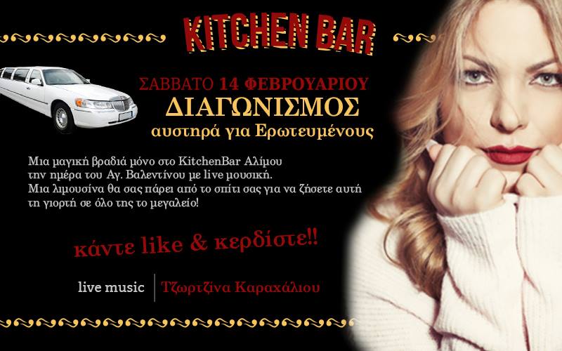 To Kitchen Bar Αλίμου διοργανώνει διαγωνισμό και σας δίνει τη δυνατότητα να κερδίσετε ένα γεύμα για δύο άτομα την ημέρα του Αγίου Βαλεντίνου και παραλαβή με λιμουζίνα από το σπίτι σας!