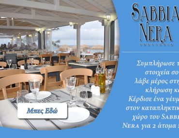 Η Sabbia Nera Trattoria διοργανώνει διαγωνισμό και σας δίνει τη δυνατότητα να κερδίσετε 1 γεύμα για 2 άτομα!