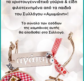 Αποκτήστε Χριστουγεννιάτικα Γούρια και είδη φιλοτεχνημένα από τα παιδιά του Συλλόγου “Αμυμώνη” στο goldenbrands.gr! Όλα τα έσοδα της καμπάνιας θα αποδοθούν στο Σύλλογο.