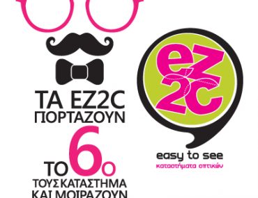 Τα καταστήματα οπτικών EZ2C (easy to see) διοργανώνουν διαγωνισμό και σας δίνουν τη δυνατότητα να κερδίσετε 2 ολοκληρωμένα ζευγάρια γυαλιών οράσεως με λεπτούς επιστρωμένους οφθαλμικούς φακούς για τέλειο αισθητικό αποτέλεσμα αξίας μέχρι 259,90€.