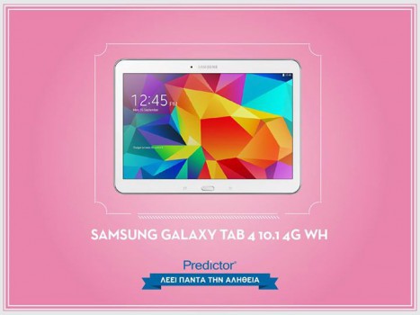 Η σελίδα Predictor Greece διοργανώνει διαγωνισμό και σας δίνει τη δυνατότητα να κερδίσετε 1 tablet Samsung Galaxy TAB 4 10.1 4G WH, ένα πακέτο διανυκτέρευσης και γεύματος στο boutique ξενοδοχείο ΤΗΕ MARGI στην Βουλιαγμένη, μια δωροκάρτα αγορών Mothercare αξίας 200€ και ένα δείπνο για δύο στο εστιατόριο PAUSA.