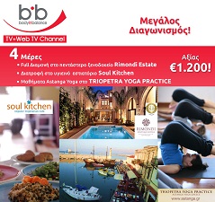 To bodyinbalance.gr το μεγαλύτερο portal γύρω από την γυμναστική στο σπίτι αλλά και το τηλεοπτικό κανάλι bodyinbalance Tv σας προσφέρουν 4 μέρες στην πανέμορφη Κρήτη για να κάνετε τις διακοπές σας στο 5άστερο ξενοδοχείο Rimondi Estate και ταυτόχρονα να παρακολουθήσετε μαθήματα Astanga Yoga από το Triopetra Yoga Practice κάτα την διάρκεια της παραμονή σας. Επιπλέον μπορείτε να κερδίσετε και διατροφή στο υγιεινό εστιατόριο Soul Kitchen. Ένα δώρο συνολικής αξίας 1.200 € από το νέο Τv + Web Tv κανάλι που έχει έρθει για να γίνει η καθημερινή σας συνήθεια.
