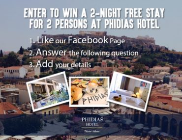 Το phidias.gr διοργανώνει διαγωνισμό και σας δίνει τη δυνατότητα να κερδίσετε 2 δωρεάν διανυκτερεύσεις για 2 άτομα στο Phidias Hotel, στην περιοχή Θησείο της Αθήνας.