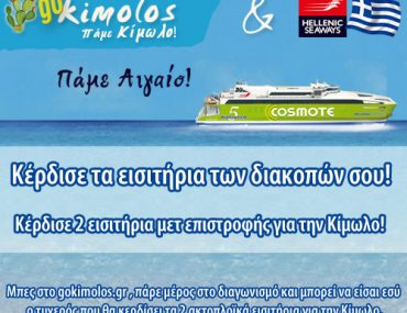 Το gokimolos.gr σε συνεργασία με την Hellenic seaways διοργανώνει διαγωνισμό και χαρίζει 2 εισιτήρια μετ επιστροφής για την Κίμωλο με το Flying cat 3.