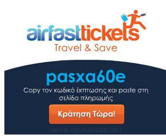 Η Airfasttickets.gr σας προσφέρει εκπτωτικό κουπόνι, για έκπτωση 60€ σε πακέτα διακοπών! Ο κωδικός του κουπονιού είναι pasxa60e και ισχύει για κρατήσεις που θα πραγματοποιηθούν έως 10/04.