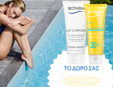 H Biotherm διοργανώνει διαγωνισμό και δίνει τη δυνατότητα σε 3 τυχερούς να κερδίσουν από ένα σετ Lait Corporel & Lait Solaire σε ιδανική συσκευασία για τη τσάντα!