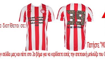 Η σελίδα ΟΛΥΜΠΙΑΚΟΣ.αιώνιος πρωταθλητής διοργανώνει διαγωνισμό και σας δίνει τη δυνατότητα να κερδίσετε την επετειακή φανέλα του ΟΛΥΜΠΙΑΚΟΥ που φορούσαν οι παίκτες μας στην Φιέστα.