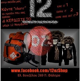 Η σελίδα του 12oz. διοργανώνει διαγωνισμό και σας δίνει τη δυνατότητα να κερδίσετε μια τσάντα DC και μια ζακέτα abercrombie.