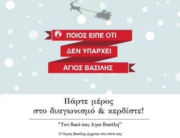 Πάρτε μέρος στο διαγωνισμό των ζαχαροπλαστείων Κωνσταντινίδης και κερδίστε το δικό σας Άγιο Βασίλη. Ο Άγιος Βασίλης έρχεται το σπίτι σας, στην Αθήνα στις 25/12 και στη Θεσσαλονίκη στις 26/12 με τον σάκο του γεμάτο με γλυκά και δώρα! Ίσως είστε εσείς ένας από τους εφτά τυχερούς!